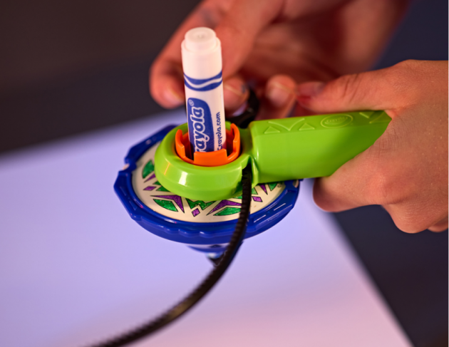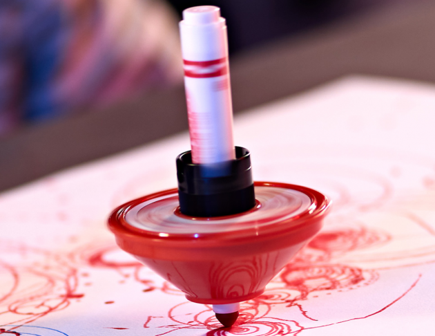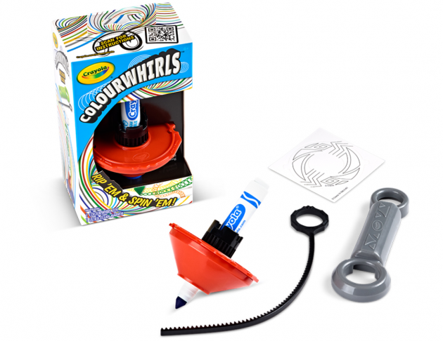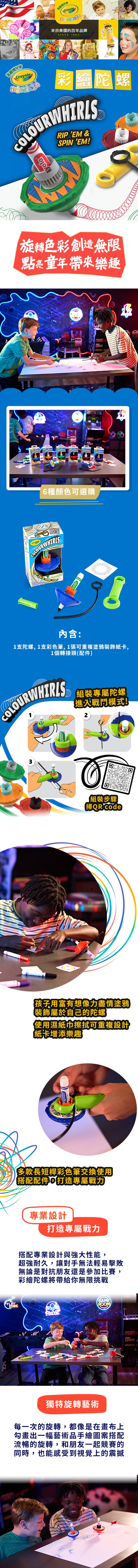 - 內含1支陀螺, 1支可水洗粗桿彩色筆, 1張裝飾紙卡, 轉接頭及配件