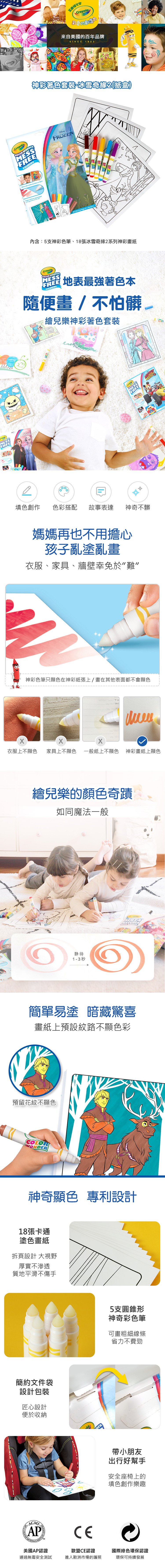 - 內含5支神彩色筆、18張冰雪奇緣2系列神彩畫紙。