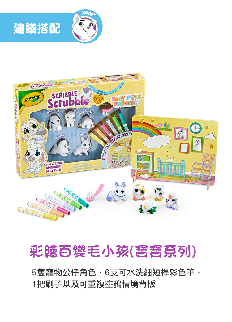 彩繪可愛寵物公仔增添繪畫的樂趣 每驚喜包(盲包)內含1個隨機款式寵物公仔、2支可水洗細短桿彩色 擁有絨面質感,並可水洗並重複繪畫 產品具有AP安全認證,安全無毒,不含危害人體的有毒物質 產品尺寸(包裝):W16.51xL20.61xH15.56cm 適合年齡:3+ 進口地(產地):中國 淨重:0.04kg
