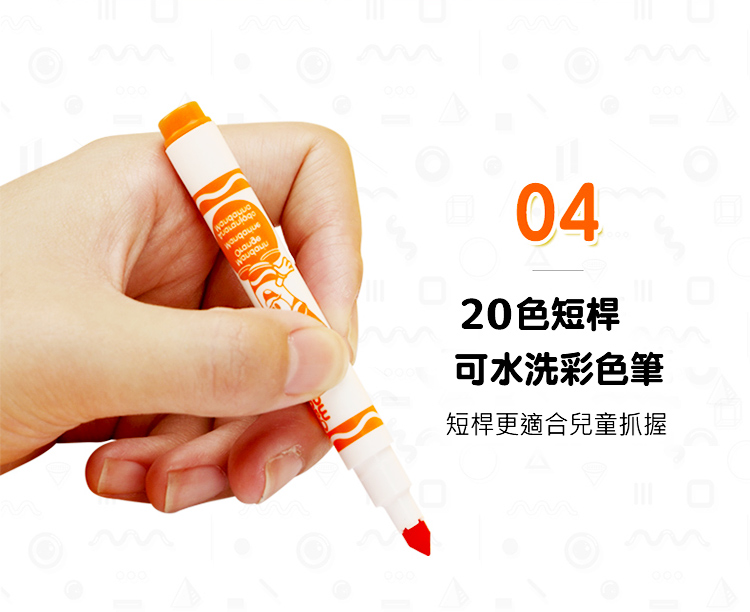- 可水洗彩色筆,可立即以溫水清除洗淨,無需擔憂留下痕跡