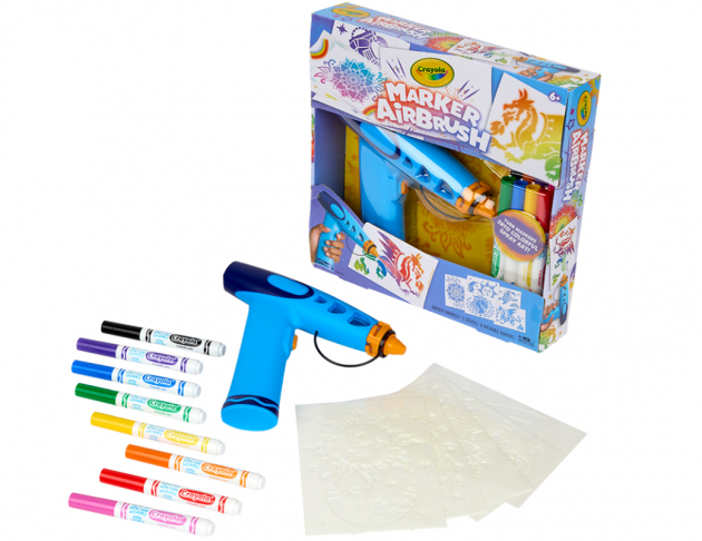 - 內含1支手持噴槍, 5張彩繪模板, 8支可水洗粗桿彩色筆